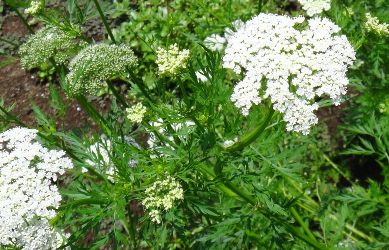 複散形花序に、白い小さい5弁花が多数咲く。(2017/6/24)