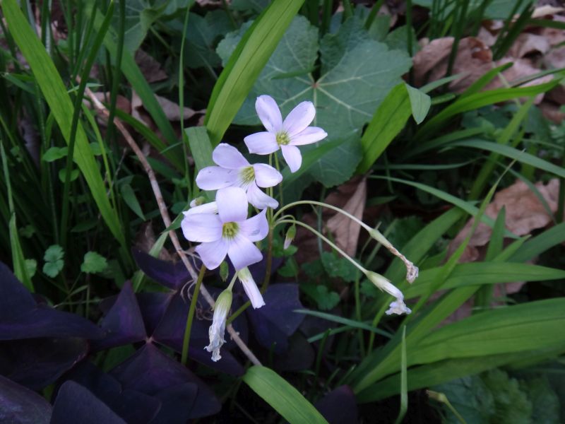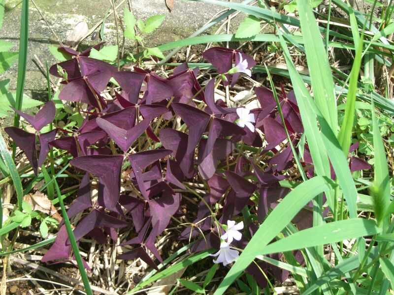 オキザリス・トライアングラリス。小葉が三角形で紫色である。(2009/5/19)
