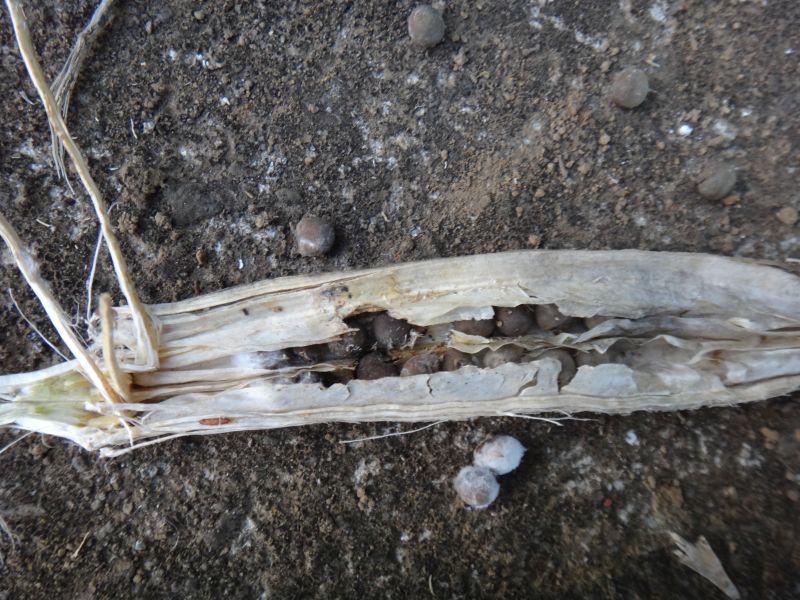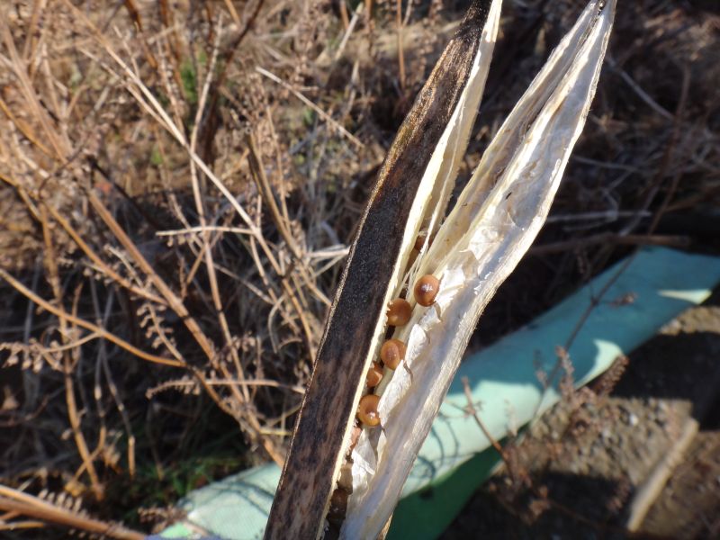 刮ハは木質化し、裂開すると丸い種子が現れる。(2015/1/17)