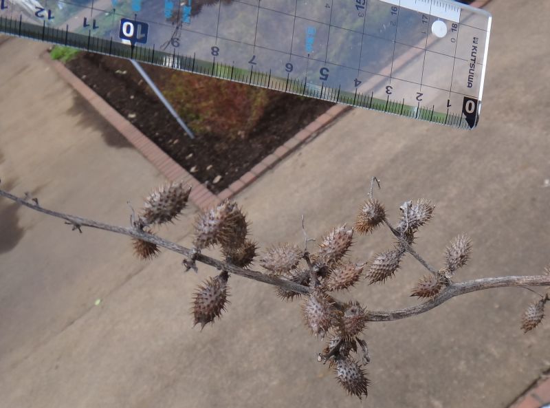 オナモミの果実は、長さ0.8〜1.4センチで、小さい。(2016/11/20)