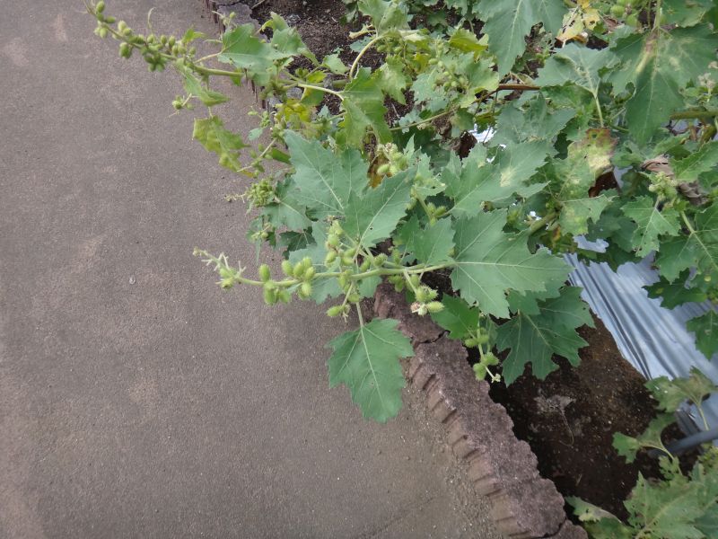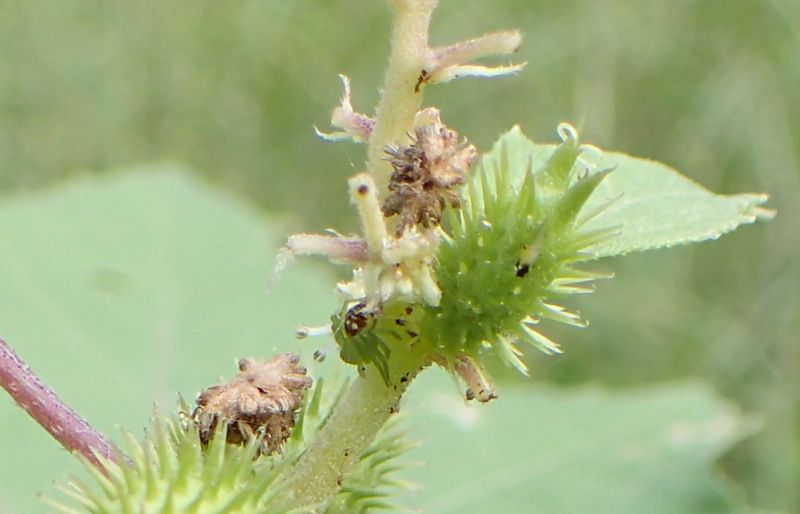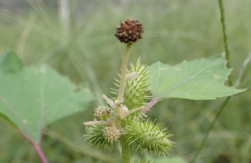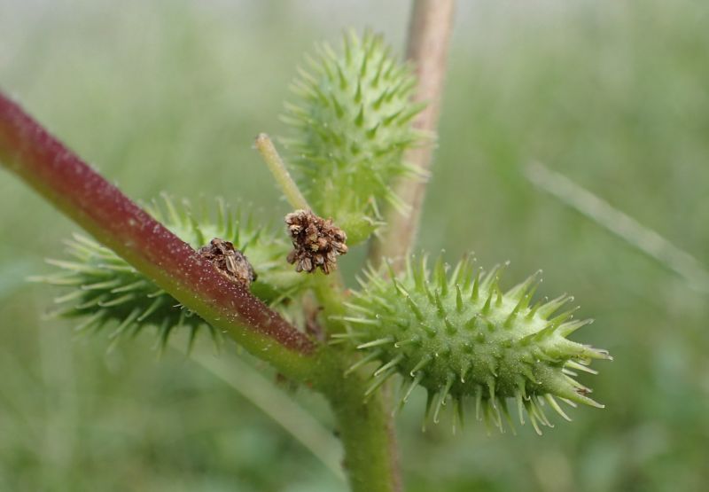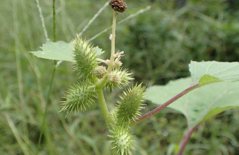 オナモミ :高さ0.4〜1.4メートル、果胞0.8〜1.4センチで数個ずつまばらにつく、棘約2ミリでややまばら。