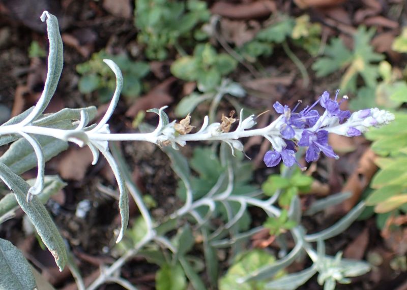 全体に綿毛があり、葉は倒披針形で、青紫色の花が総状に咲く