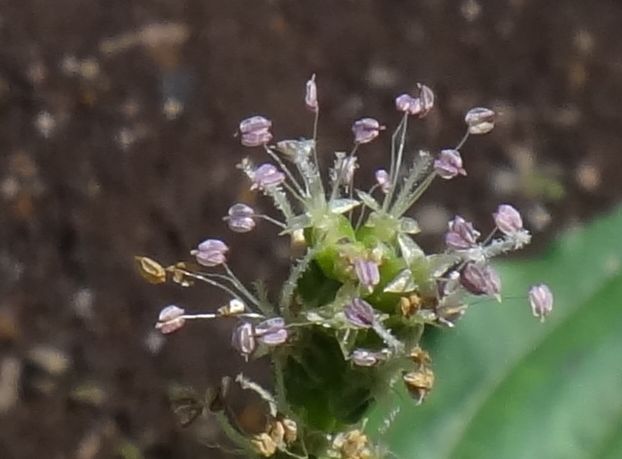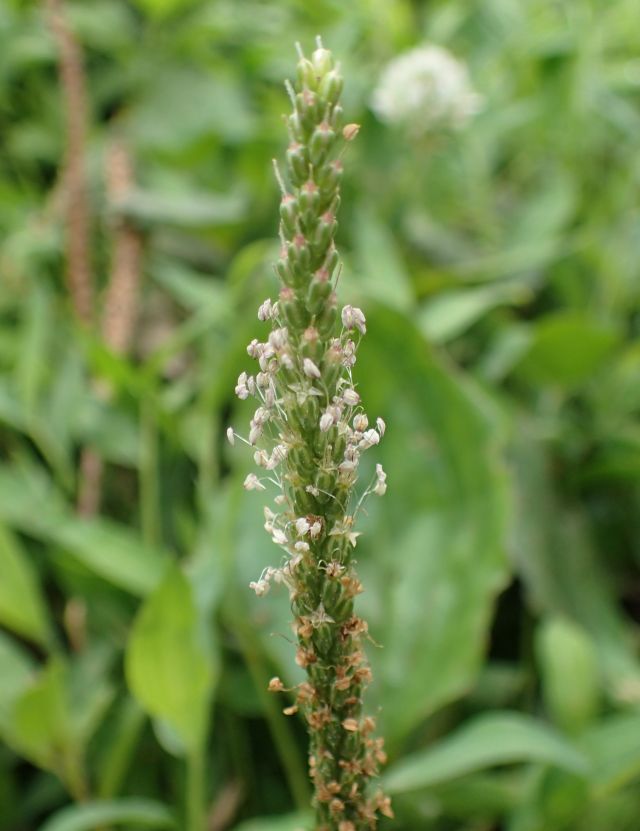 穂の中央1/3は雄性期で、白い雄しべがのびている。