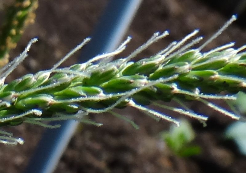 穂の上部1/3は雌性期で、白い柱頭がのびている。