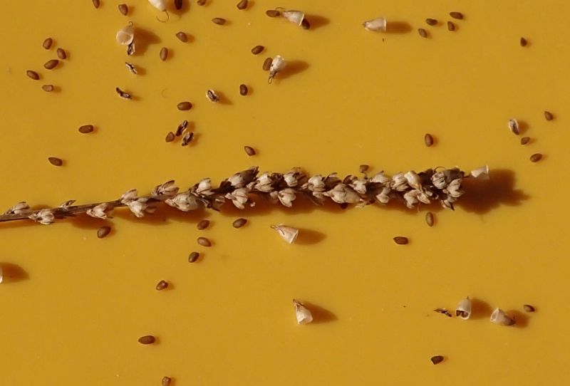 種子は褐色で、小さな米粒状。(2017/12/12)