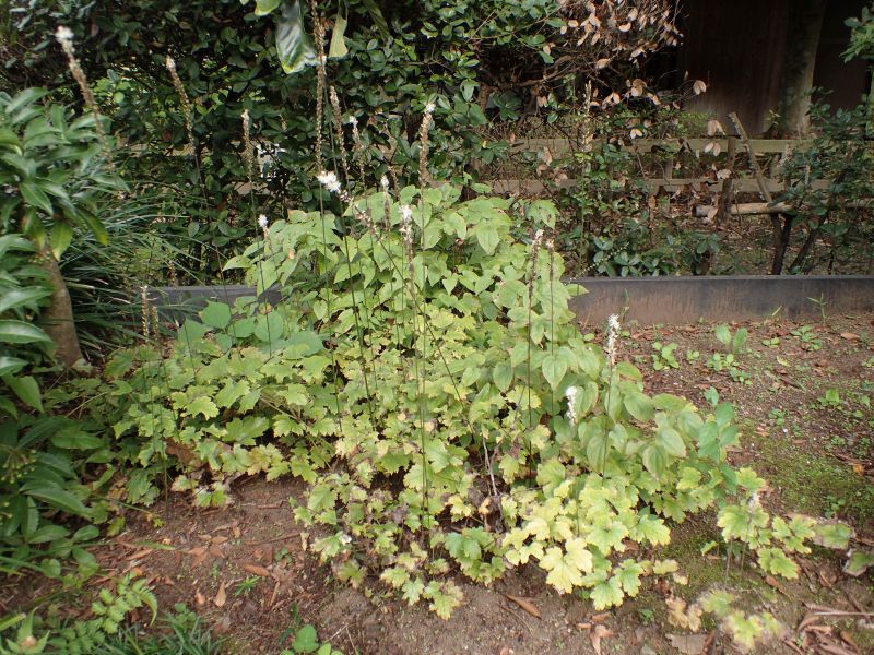 イヌショウマ :1〜2回3出複葉、小葉5〜10センチ、蕾淡紅色、花柄微無、花序枝数本。