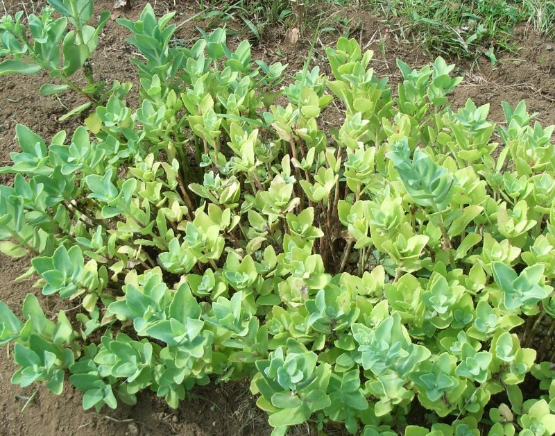 葉は長さ約5センチの楕円形で、肉厚であり、葉柄はなく、
