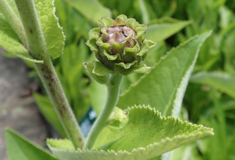 蕾。全草に白くて短い軟毛が密生する。