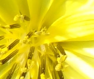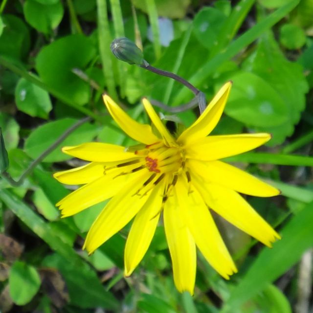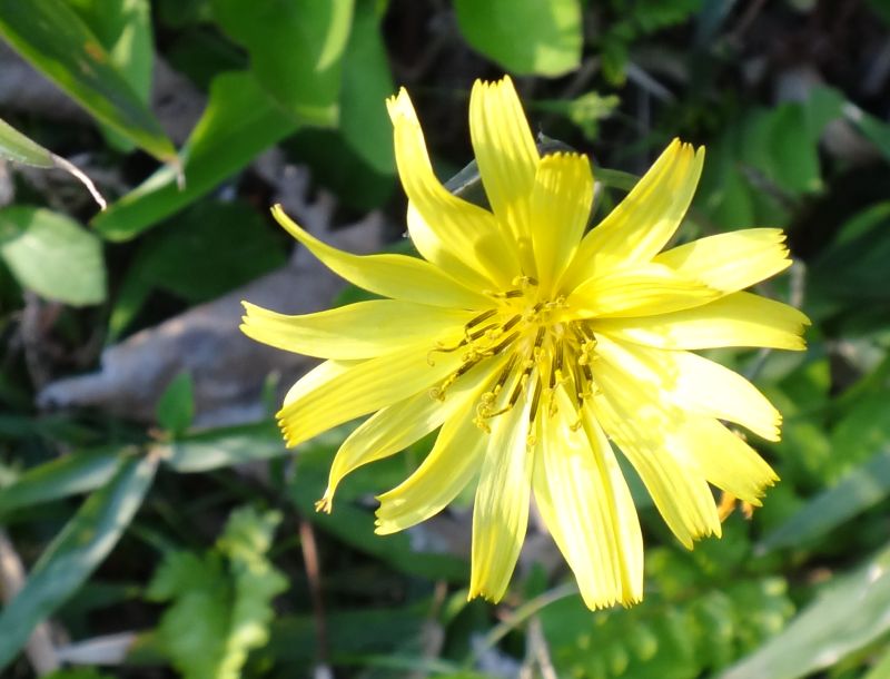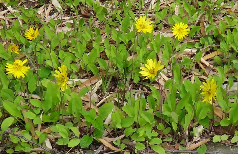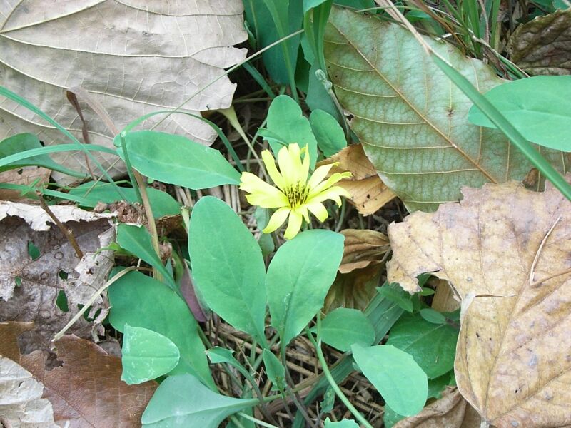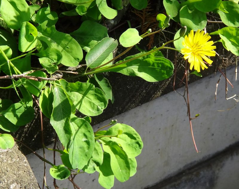 春に舌状花だけの直径2.5〜3センチの黄色い頭花を数個つける。