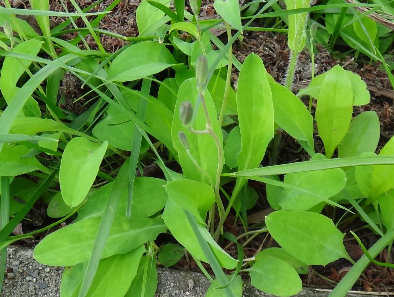 葉は根生し、長さ6〜20センチの倒披針形〜へら状楕円形で薄く、