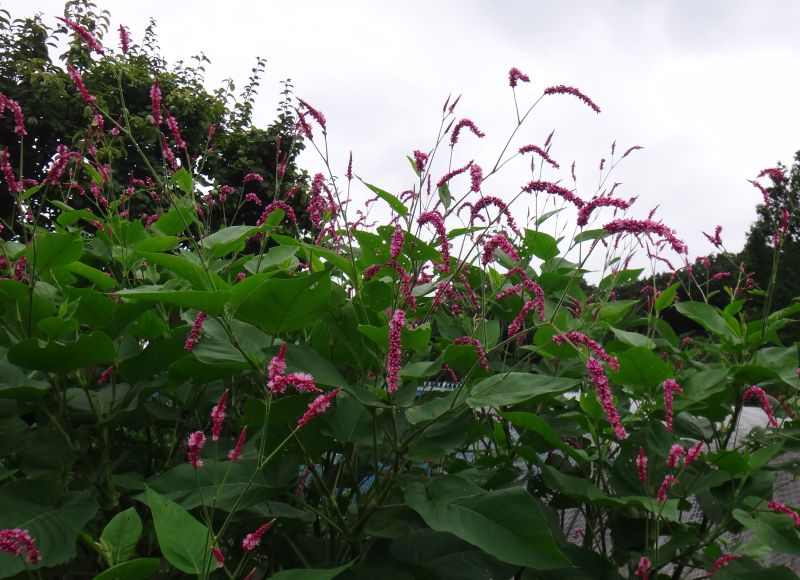 オオイヌタデ:1〜2メートルと大きく、花は淡紅色、穂は3〜7センチで垂れ、葉は披針形でとがる。