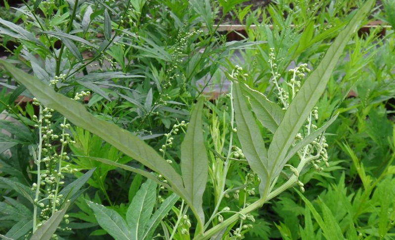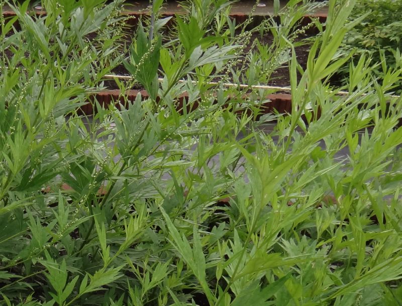 葉は羽状に深裂し、裂片の先はヨモギより鋭くとがる。