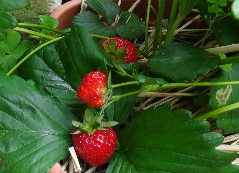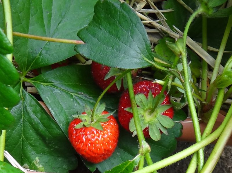 花托が大きく赤くなり、その表面に小さい種子がつく偽果(イチゴ状果)