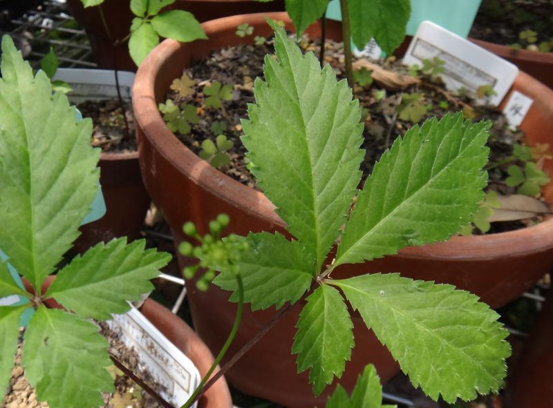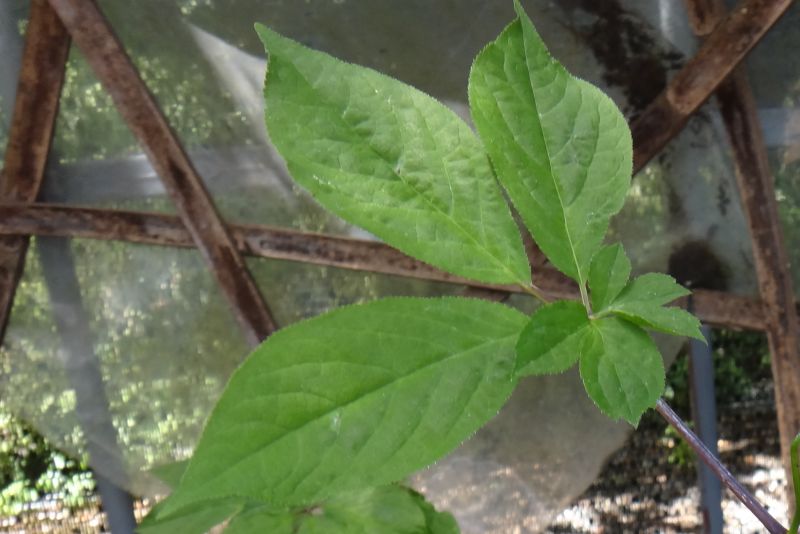 小葉は尖った楕円形で、頂小葉は大きい。直射日光を嫌う。(2016/5/5)