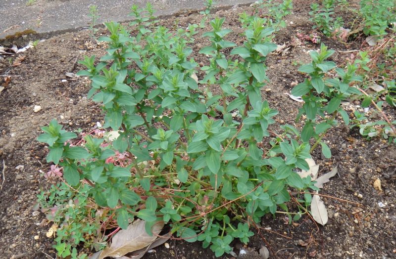 葉の向きがが段ごとに90度ずれる(十字対生)。(2016/7/27)