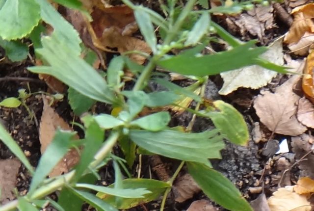 花をつけない茎では、葉は長さ3.5〜8センチのへら形で、