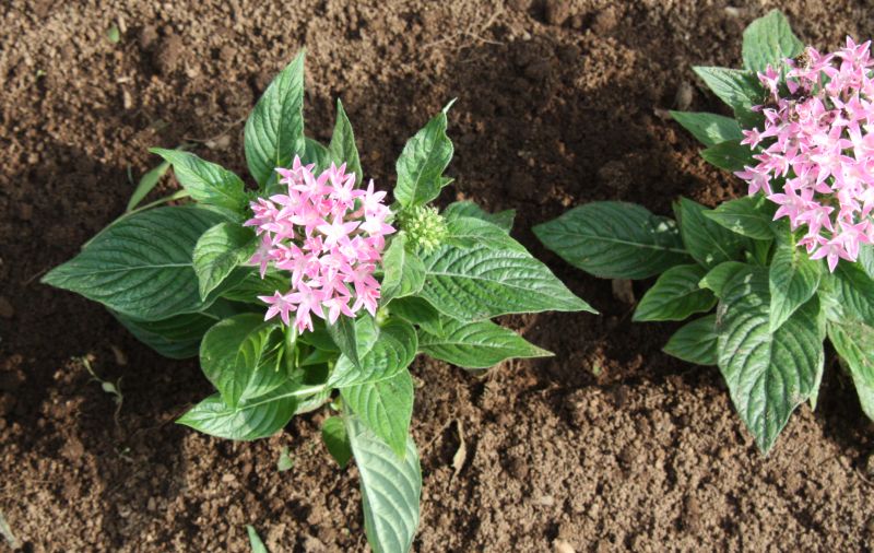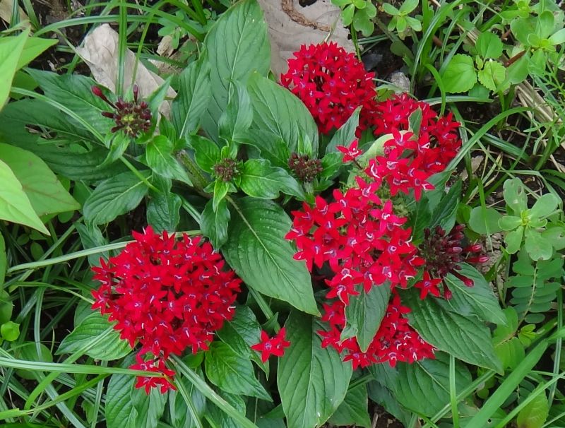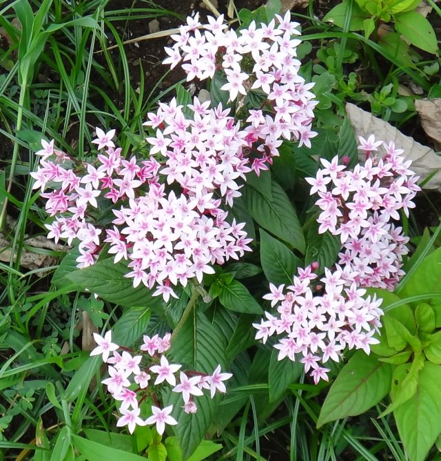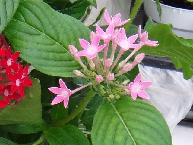 赤や白、紫などで5角形の星形の花を長期間にわたって咲かせる。
