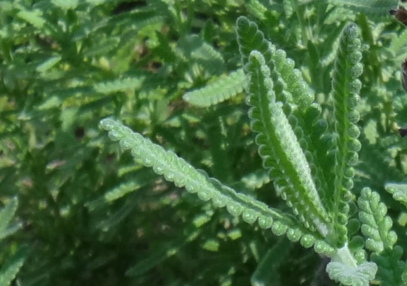 葉は長さ2.5〜3.5センチの被針形で、白毛が密生し、十字対生する。 鋸歯のあるものもある。