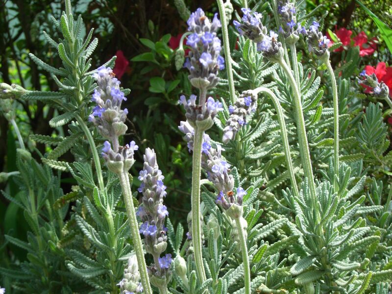 双子葉、合弁花、 シソ科、 ラベンダー属(ラバンジュラ属)、常緑低木ないし多年草。 用語説明