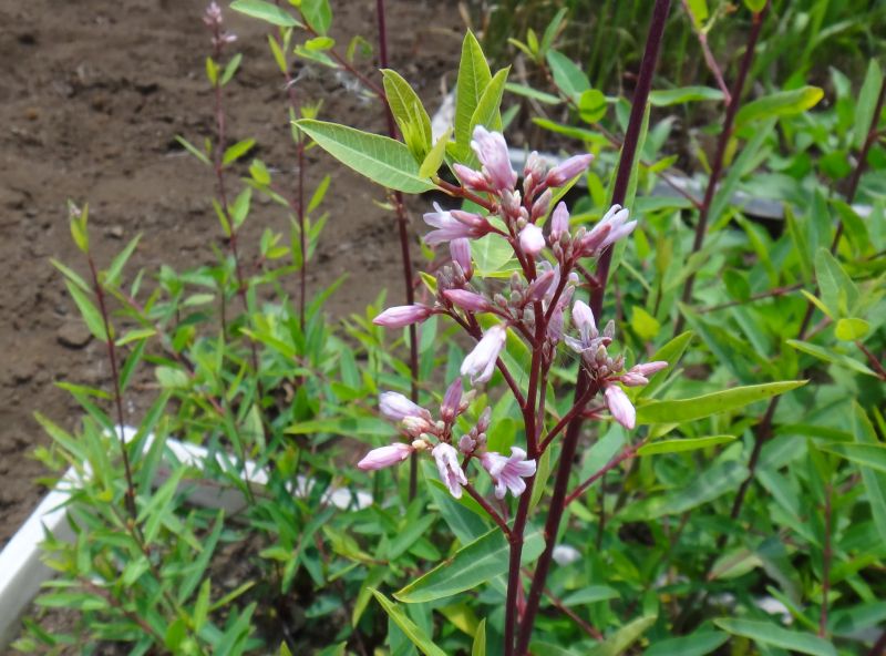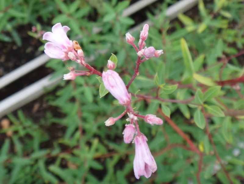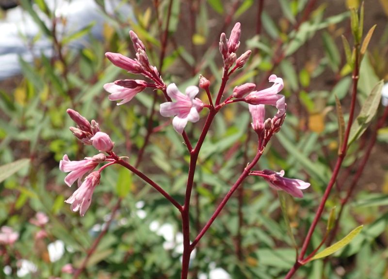 枝先の集散花序に淡紅色の花をつけ、