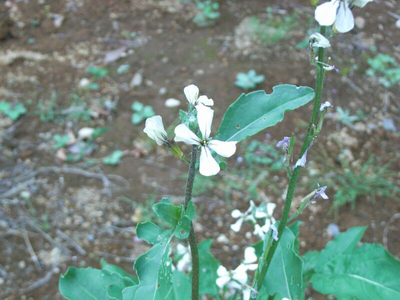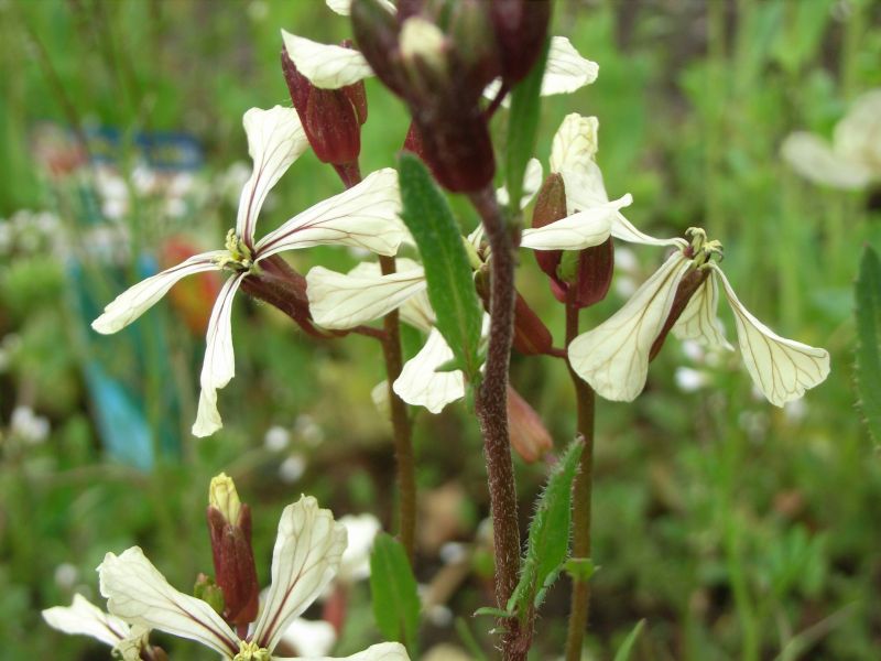 茎先の総状花序に、十字架形のクリーム色の花を咲かせる。