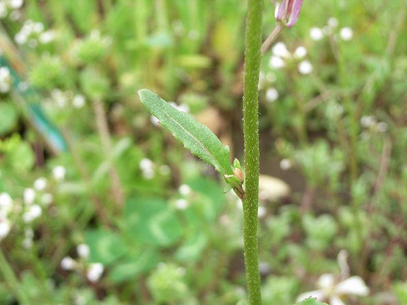 茎葉は細くて小さい長楕円形で、互生する。茎に細毛がある。(2009/3/25)