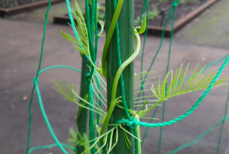 つる性で旺盛にのび、他のものに寄り掛かったりまきついたりする。