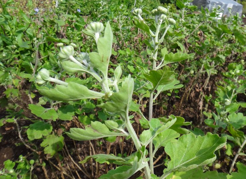 葉は広卵形で5つぐらいに中裂し、互生する。