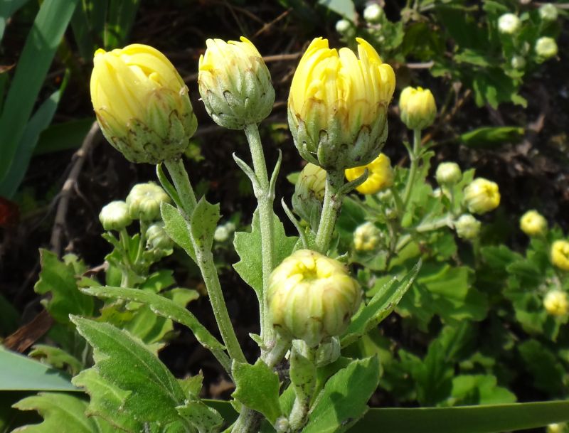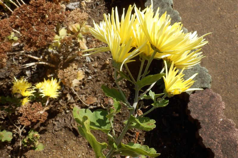頭花は枝先につき、舌状花が長くて数が多く、色は赤や黄色が多い。