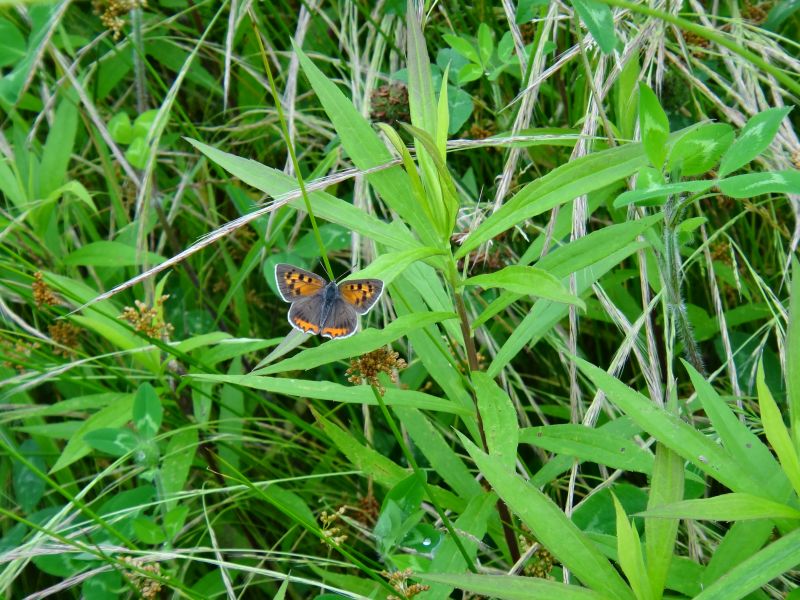 低くて不揃いな鋸歯がある。(とまっているのはベニシジミ)