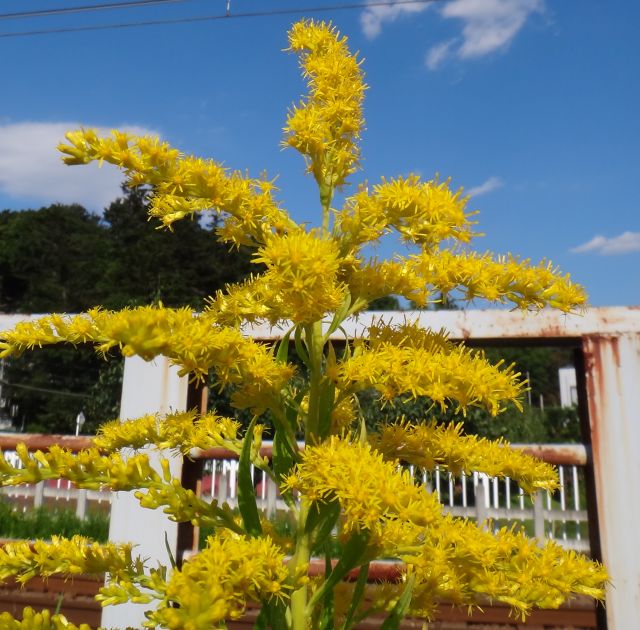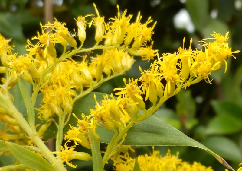 茎先に長さ10〜50センチの円錐花序を出し、黄色い花を多数つける。