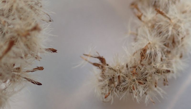 果実は円柱形のそう果で、種子には長い冠毛がある。