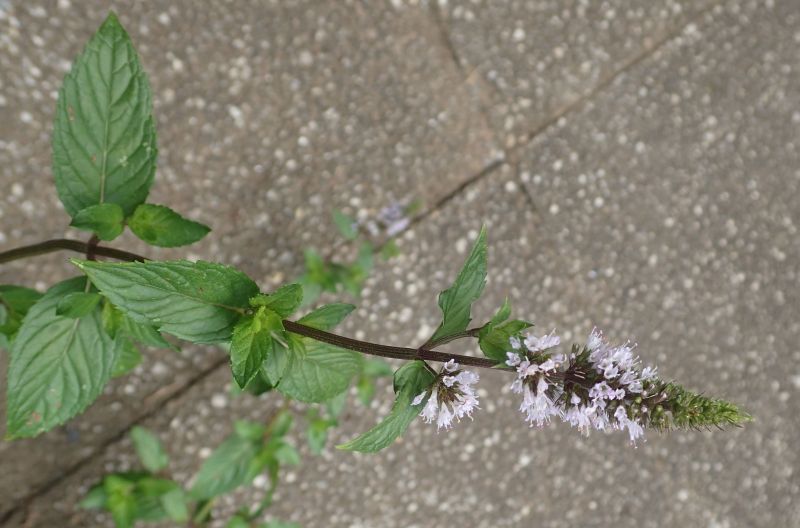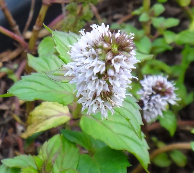 セイヨウハッカ :香気有、高さ60〜90cm、葉は卵状披針形、花は穂状で淡紫色、別名ペパーミント。