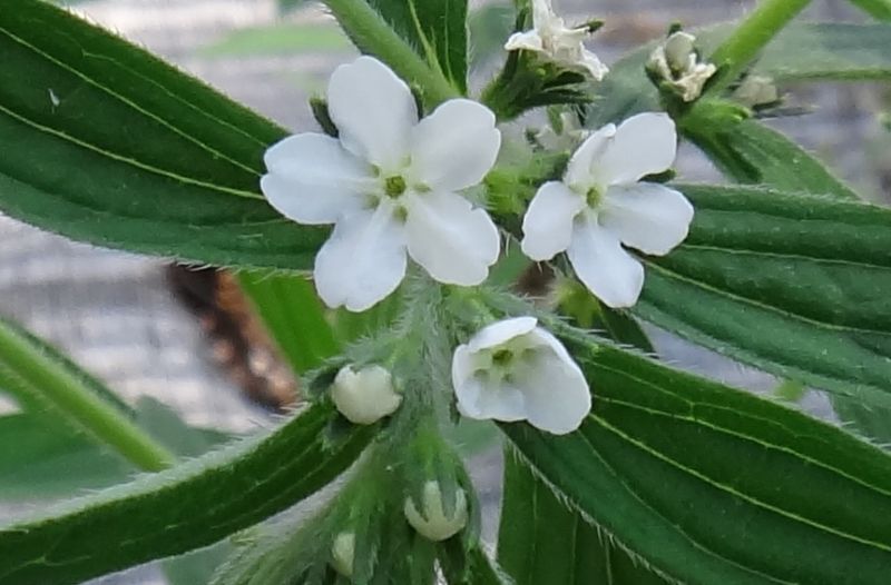 イヌムラサキ :根は肥大せず、高さ30センチ、よく分枝、果実白色で4〜5ミリ。