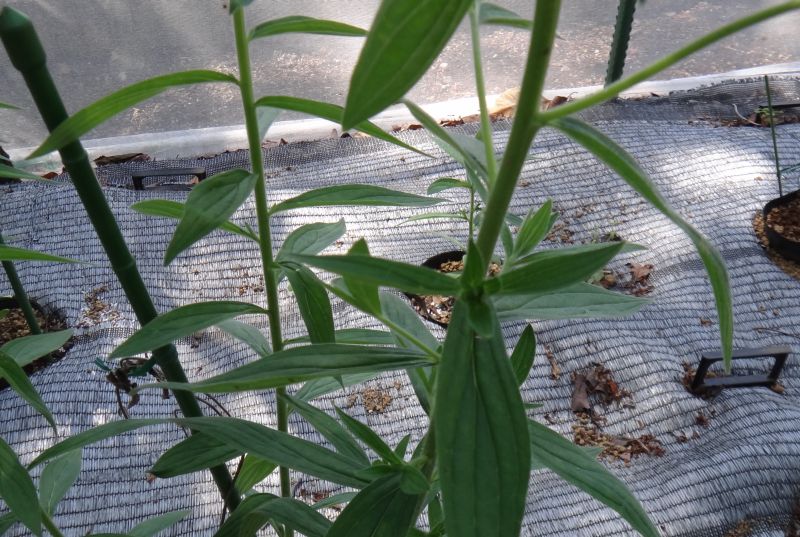 葉は全縁の狭楕円形で、葉柄がなく互生する。