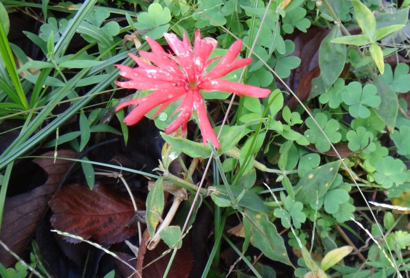 直径4センチぐらいの深紅色の5弁花を咲かせる。
