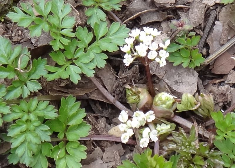 葉は1〜3回3出羽状複葉で、紫色の葉柄があって、