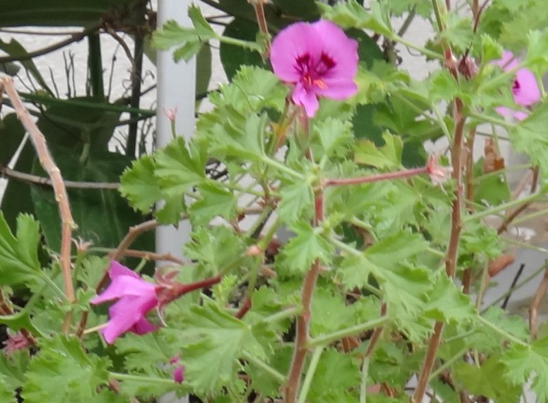 茎はゼラニウムほど太くない。葉や茎に微毛がある。