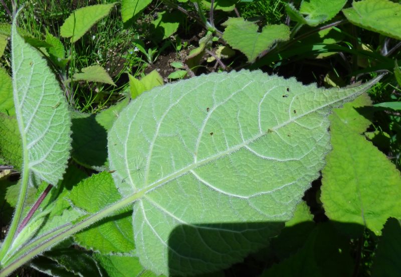 葉裏は白緑色で毛が多い。(2016/4/29)