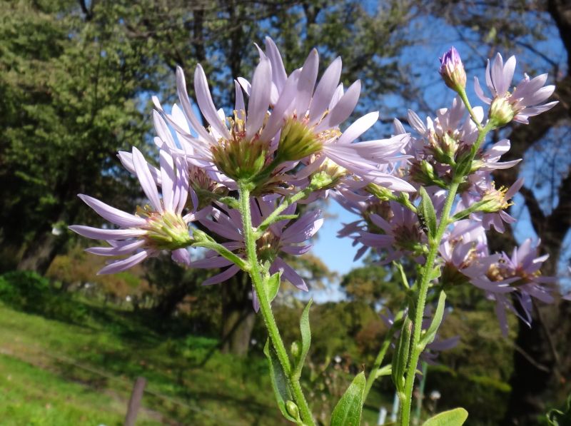 舌状花は細長くて淡青紫色であり、花柄に短毛がある。(2015/9/29)