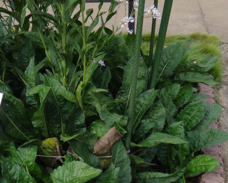 根生葉は長さ60センチぐらいの大形のへら状長楕円形で、