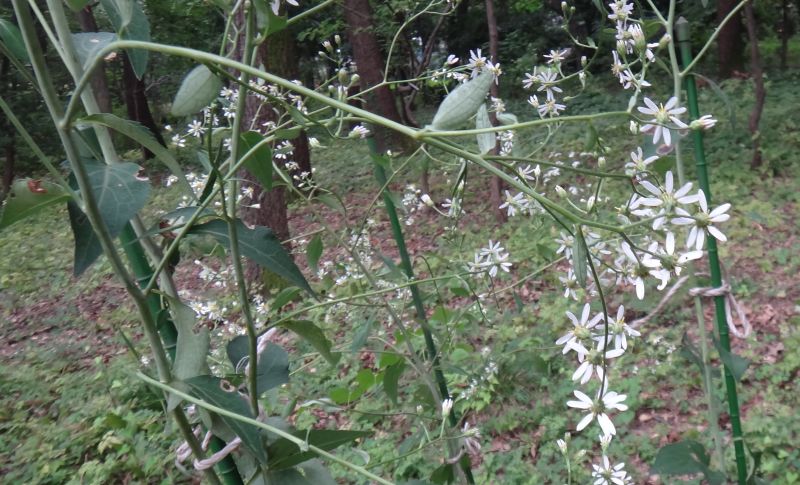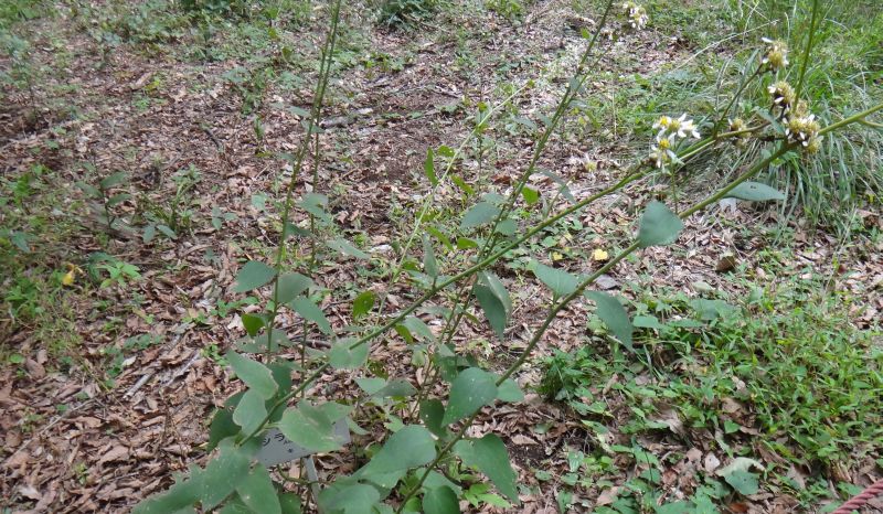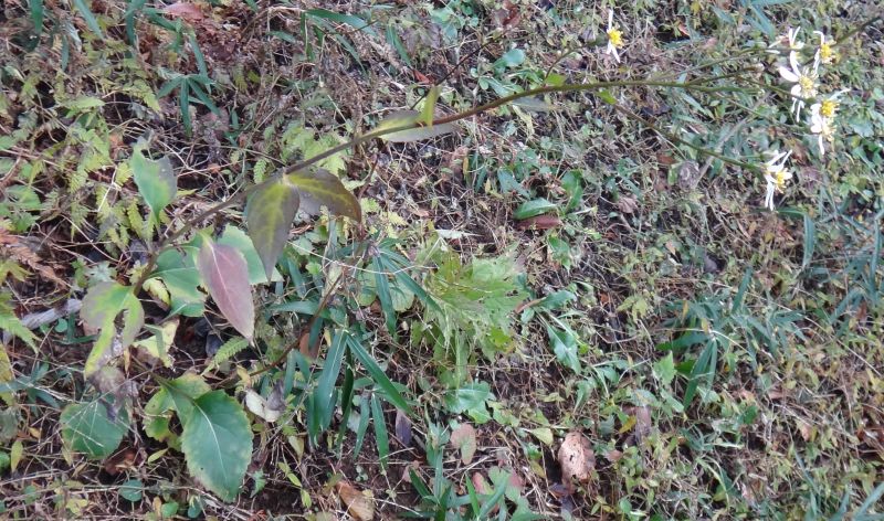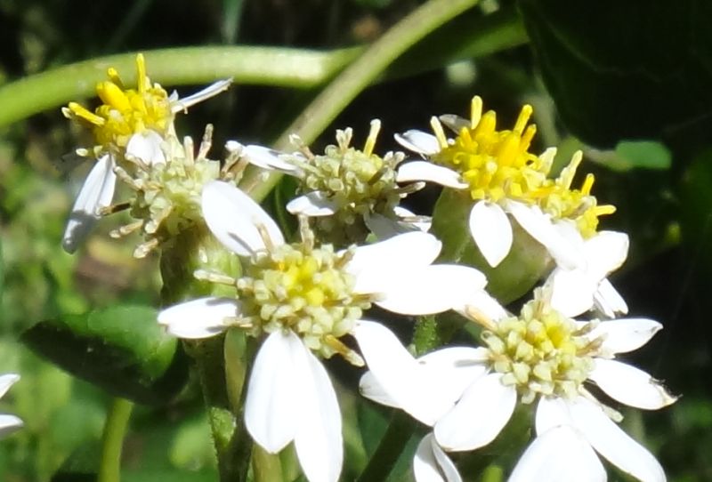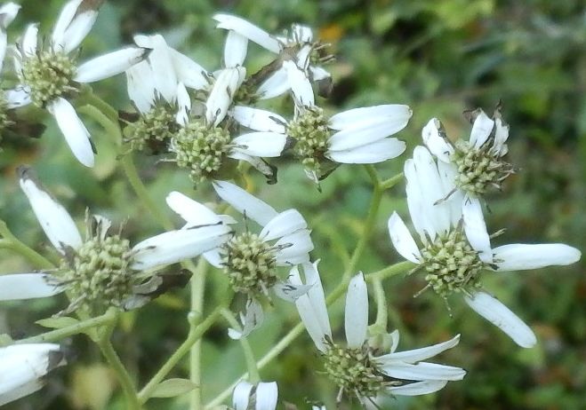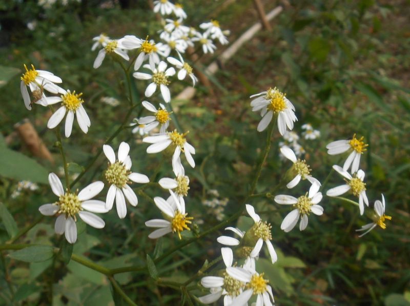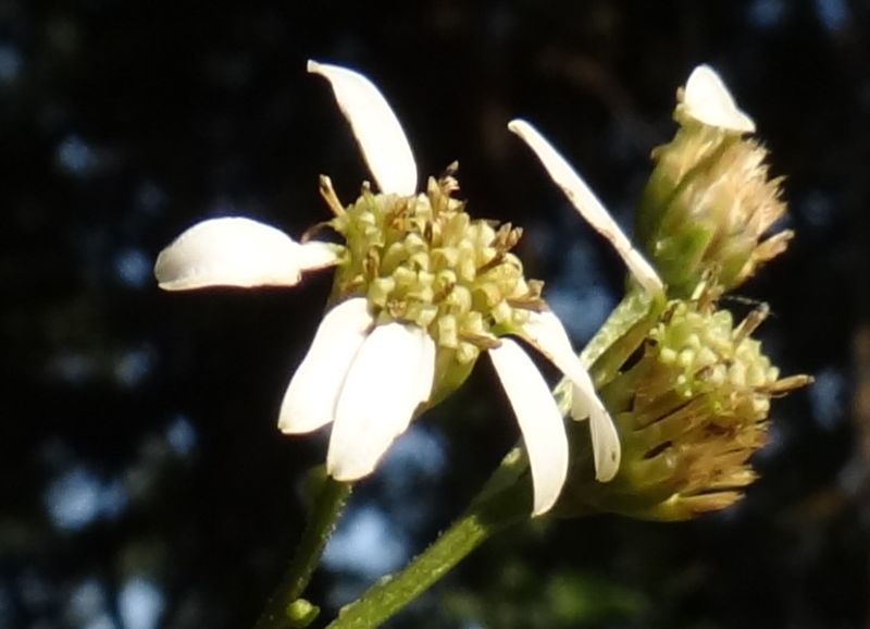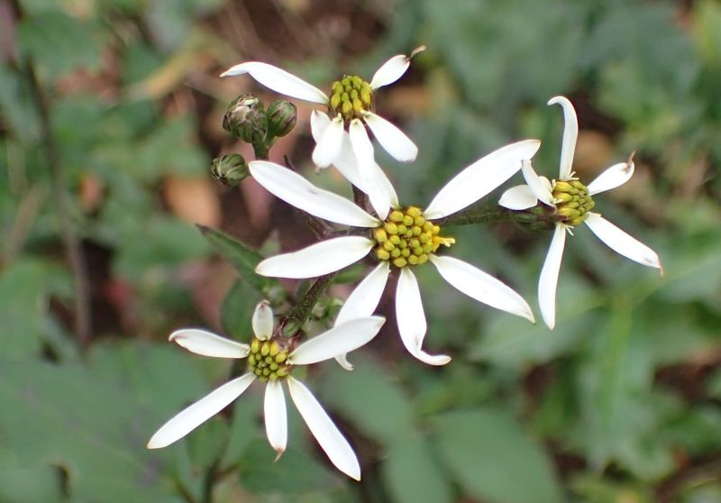 枝先に直径約2センチの頭花を数個ややまばらにつける。