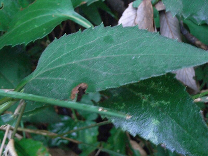 中頃の茎葉には鋸歯があり、葉柄には少し翼がある。(2008/10/26)