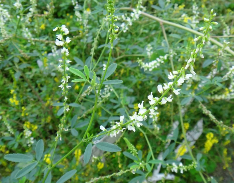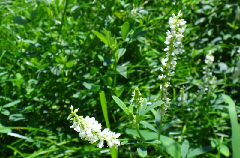長さ5〜7ミリの白い蝶形花を多数つける。