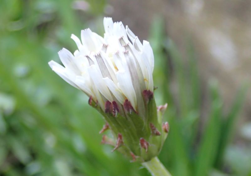 白い舌状花のみからなる直径3.5〜4.5センチの頭花を1個つける。