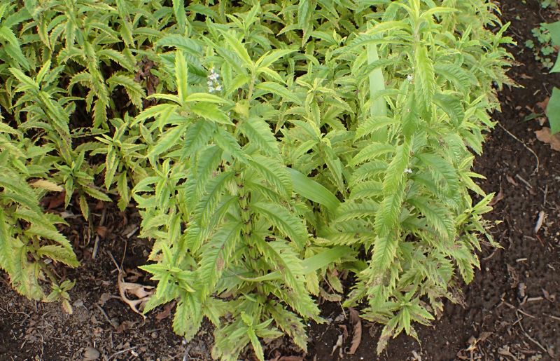葉は広披針形で、粗くて尖った鋸歯がある。(2016/7/27)