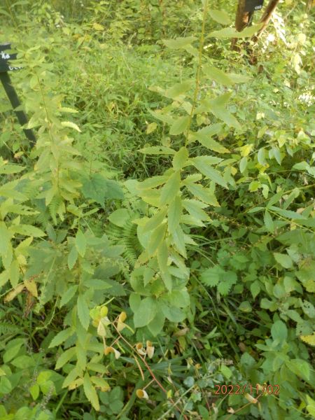 花後に萼片?が残る。茎の断面は四角形。(2017/11/9)