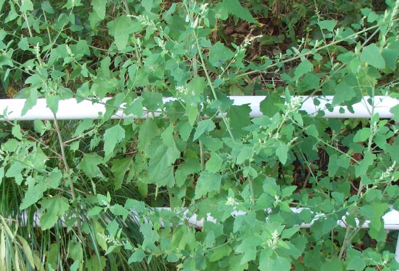 シロザ :葉は菱状卵形で、種子に光沢があり、花期は9月〜10月。