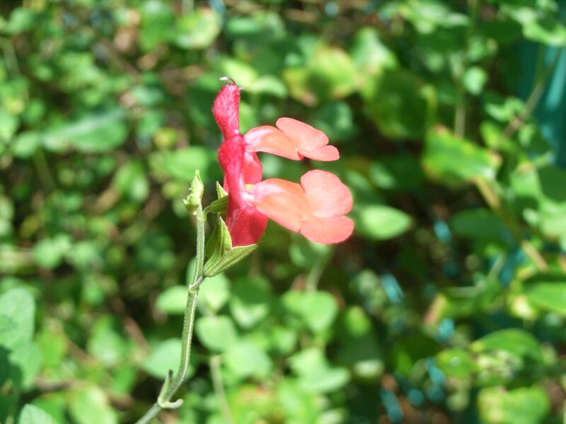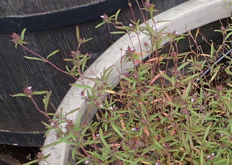 茎は細くて葉も細長く、枝先に唇形花が頭状に咲き、