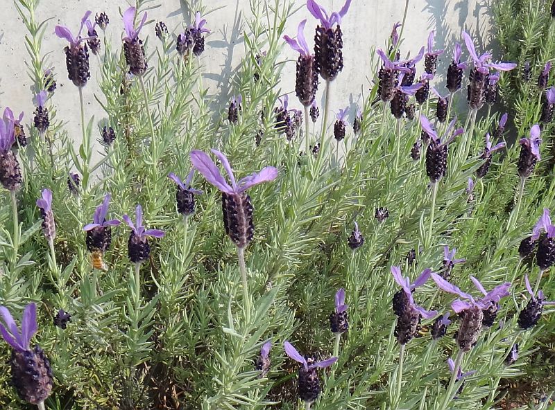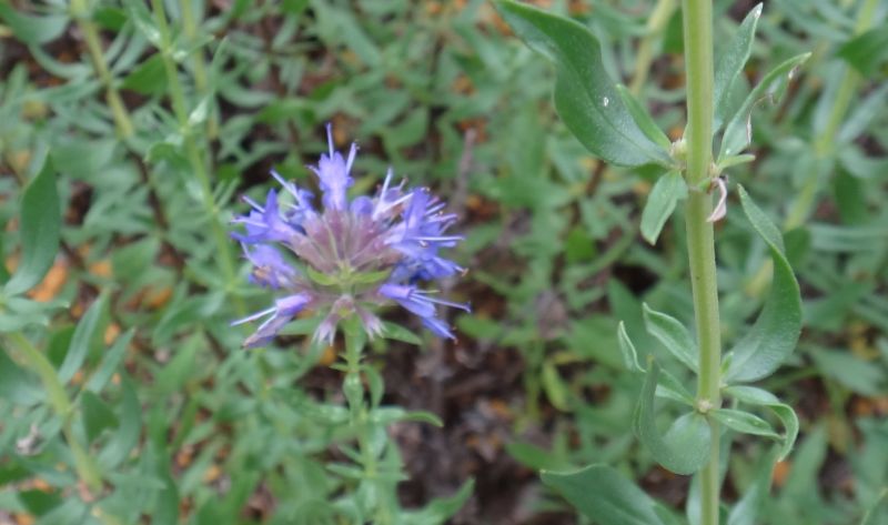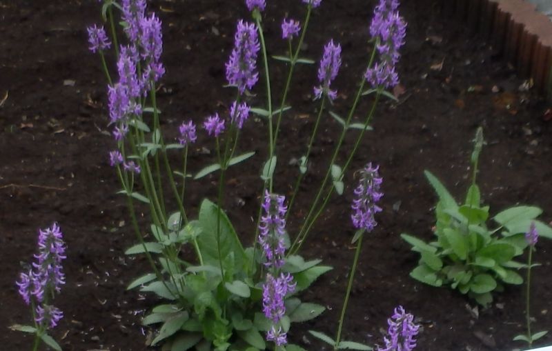 穂状花序に筒状唇形で芳香のある紫色の花をつける